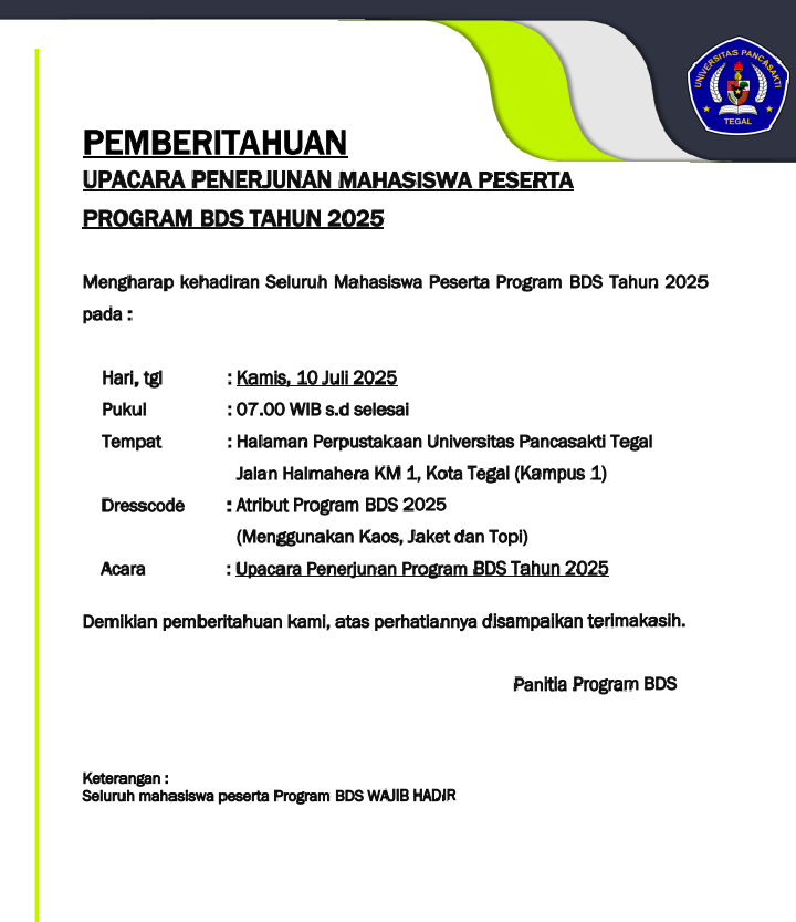 PENGUMUMAN TERKAIT PROGRAM BDS 2025